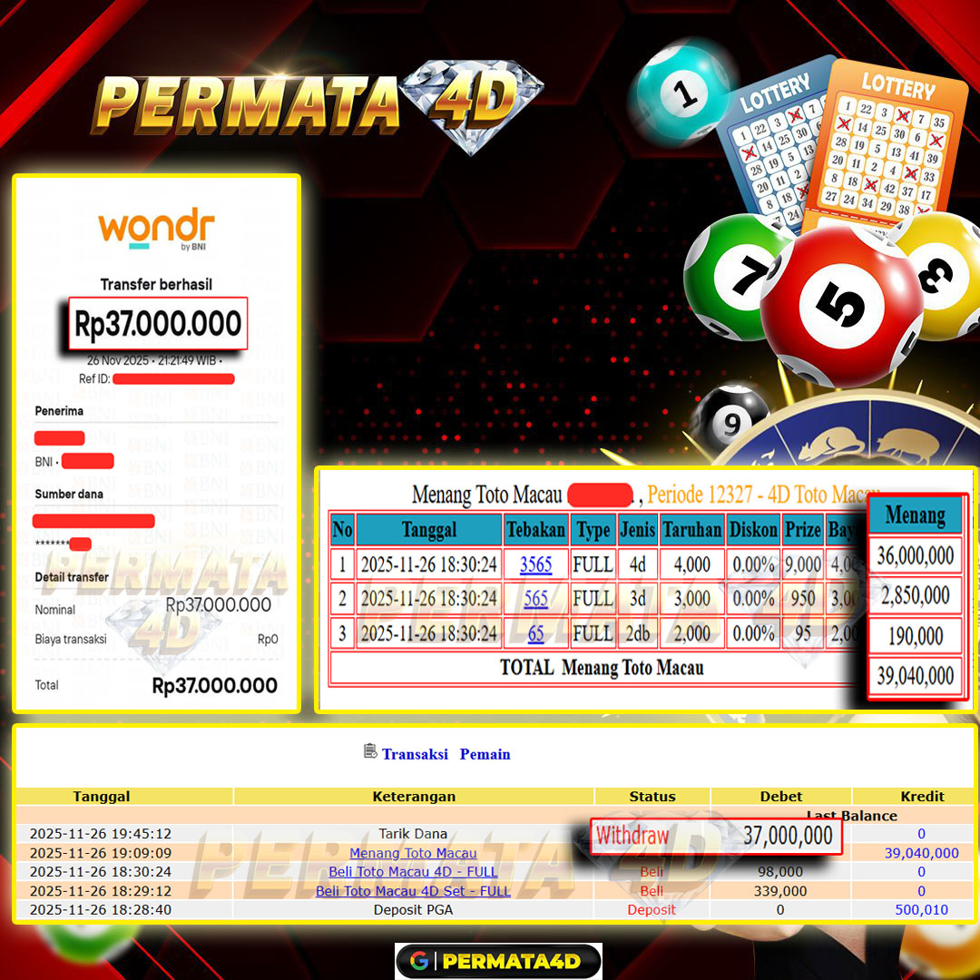 Selamat kepada User id : JA****** Telah berhasil mendapatkan kemenangan besar pada permainan STARLIGHT PRINCESS kemenangan Sebesar Rp. 80.000.000, Setelah mengisi formulir withdraw dengan kurung waktu hanya 5 - 10 menit pihak Permata4D sudah melakukan transfer kepada pemilik Userid dan dana sudah dapat di cairkan oleh pemenang. Bukti pembayaran yang kami berikan merupakan bukti pembayaran yang SAH / VALID yang langung di dapatkan melaui tanda transfer transaksi dari Bank yang di tuju.