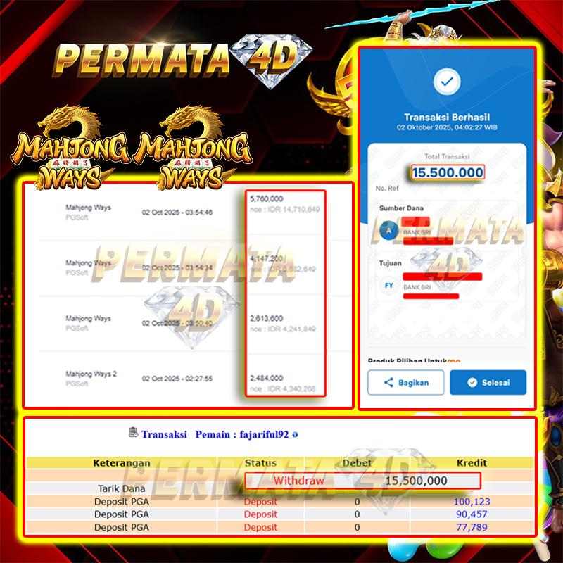 Selamat kepada User id : TU******* Telah berhasil mendapatkan kemenangan besar pada permainan STARLIGHT PRINCESS kemenangan Sebesar Rp. 44.000.000, Setelah mengisi formulir withdraw dengan kurung waktu hanya 5 - 10 menit pihak Permata4D sudah melakukan transfer kepada pemilik Userid dan dana sudah dapat di cairkan oleh pemenang. Bukti pembayaran yang kami berikan merupakan bukti pembayaran yang SAH / VALID yang langung di dapatkan melaui tanda transfer transaksi dari Bank yang di tuju.
