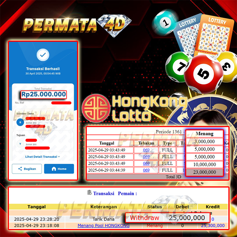 Selamat kepada User id : GA******* Telah berhasil mendapatkan kemenangan besar pada permainan GATES OF OLYMPUS SUPER SCATTER kemenangan Sebesar Rp. 250.000.000, Setelah mengisi formulir withdraw dengan kurung waktu hanya 5 - 10 menit pihak Permata4D sudah melakukan transfer kepada pemilik Userid dan dana sudah dapat di cairkan oleh pemenang. Bukti pembayaran yang kami berikan merupakan bukti pembayaran yang SAH / VALID yang langung di dapatkan melaui tanda transfer transaksi dari Bank yang di tuju.