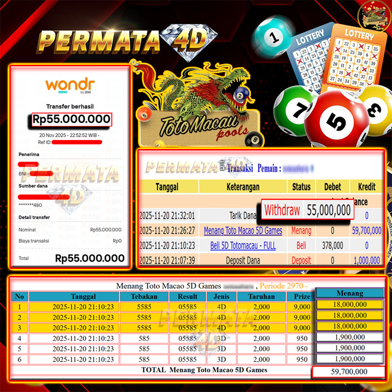 PERMATA4D JACKPOT TOTOMACAU 5D Rp. 55.000.000,- LUNAS