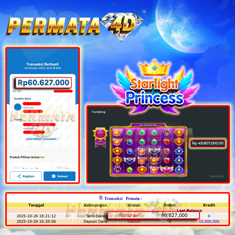 PERMATA4D JACKPOT STARLIGHT PRICESS SUPER SCATTER Rp. 60.627.000,- LUNAS