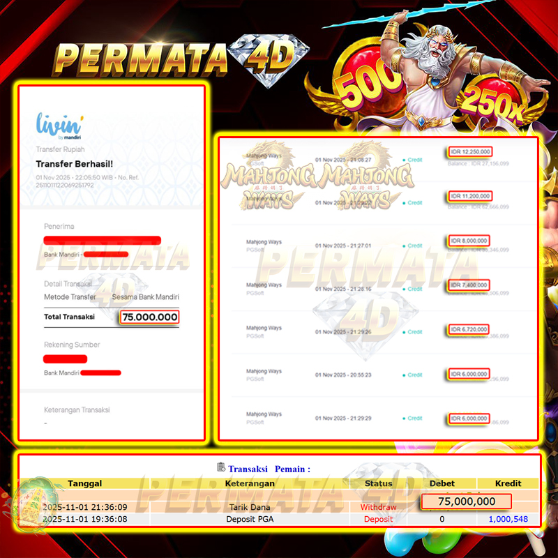 PERMATA4D JACKPOT MAHJONG WAYS Rp. 75.000.000,- LUNAS