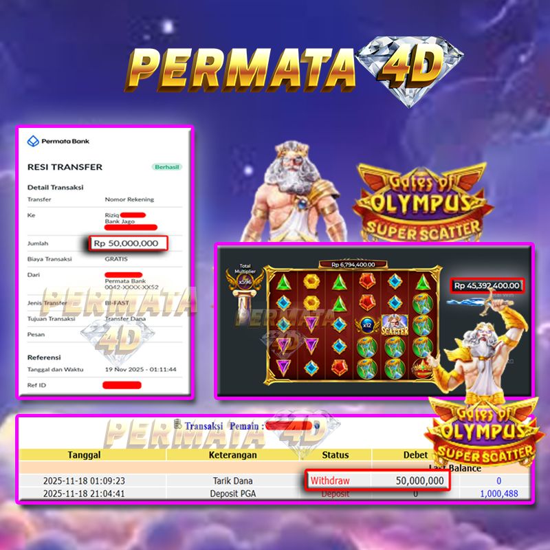 PERMATA4D JACKPOT GATES OF OLYMPUS SUPER SCATTER Rp. 50.000.000,- LUNAS