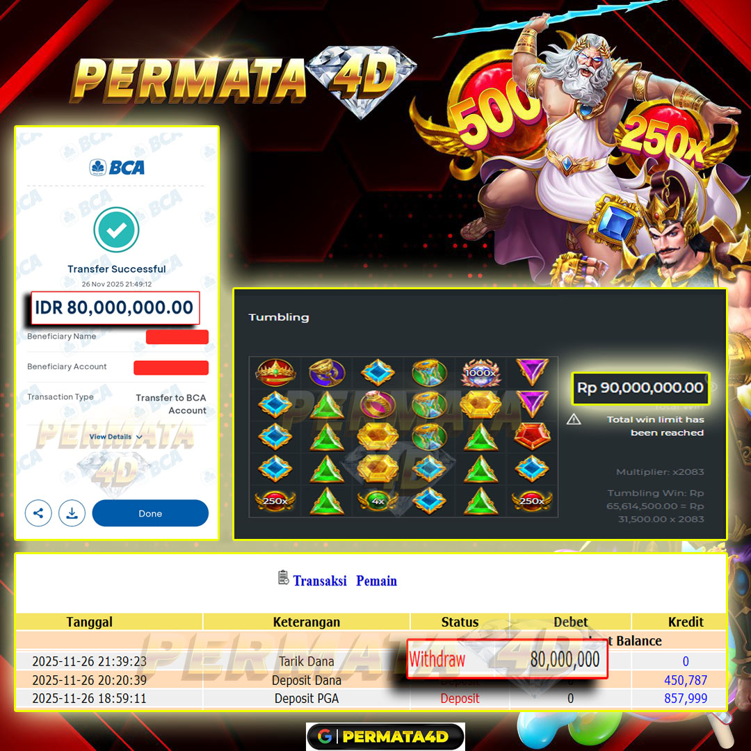 Selamat Kepada Member PERMATA4D GATES OF GATOT KACA 1000 User id BO********