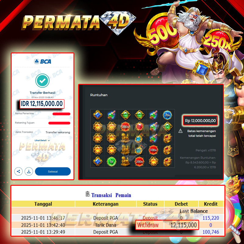 PERMATA4D JACKPOT GATES OF GATOT KACA 1000 Rp. 12.115.000,- LUNAS