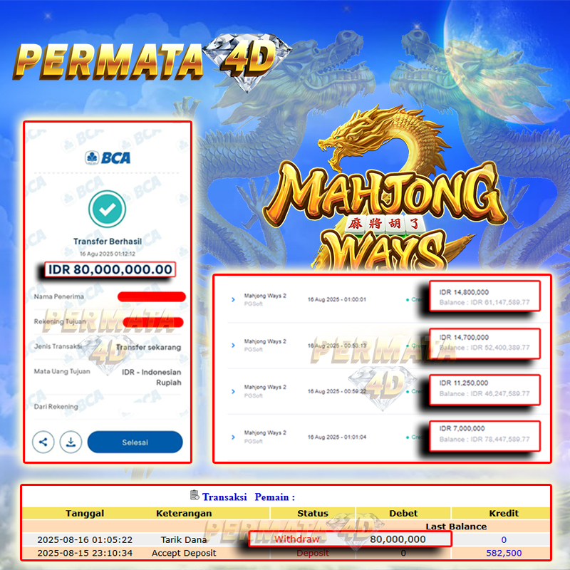 PERMATA4D JACKPOT MAHJONG WAYS 2 Rp. 80.000.000,- LUNAS