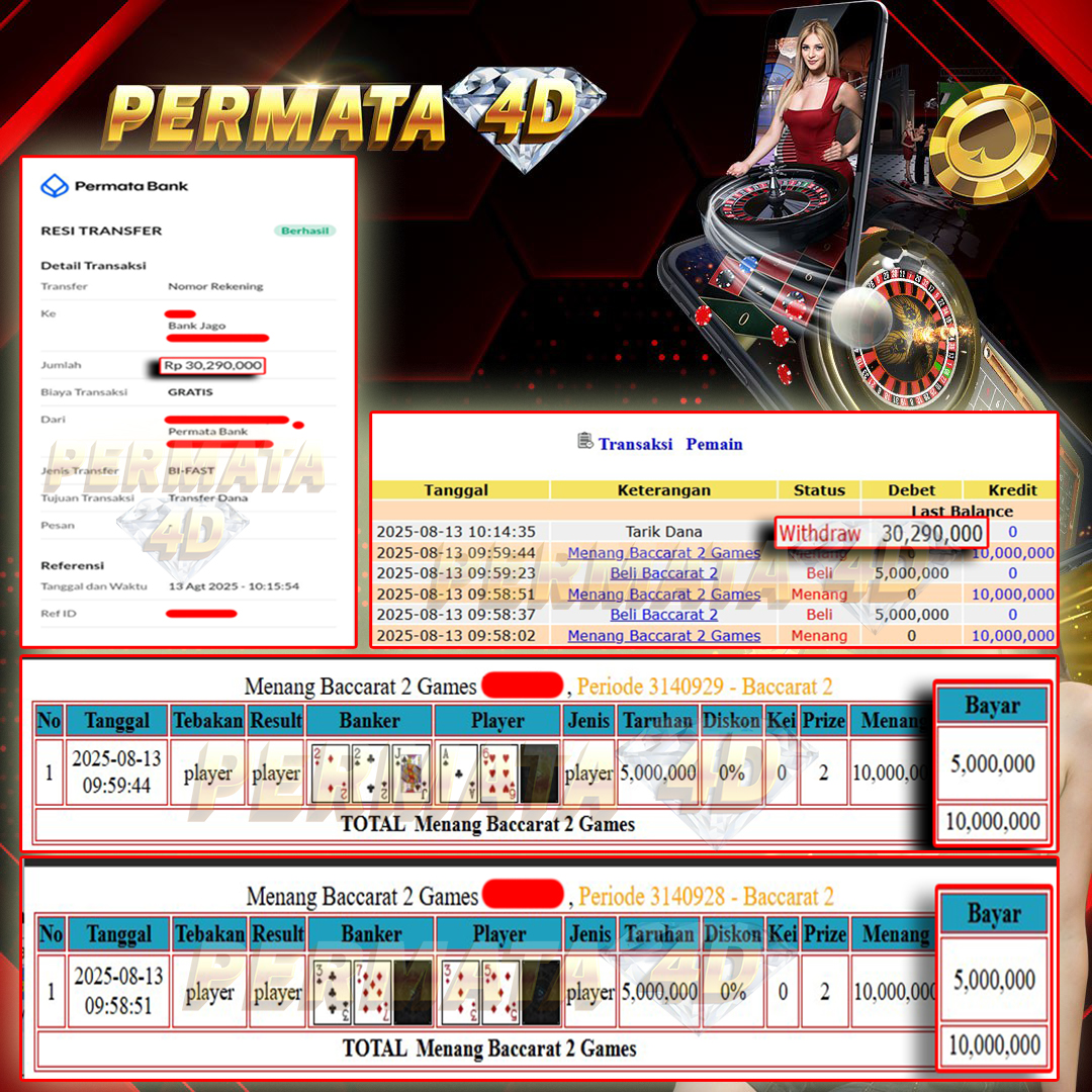 PERMATA4D JACKPOT BACCARAT 2 GAMES Rp. 30.290.000,- LUNAS