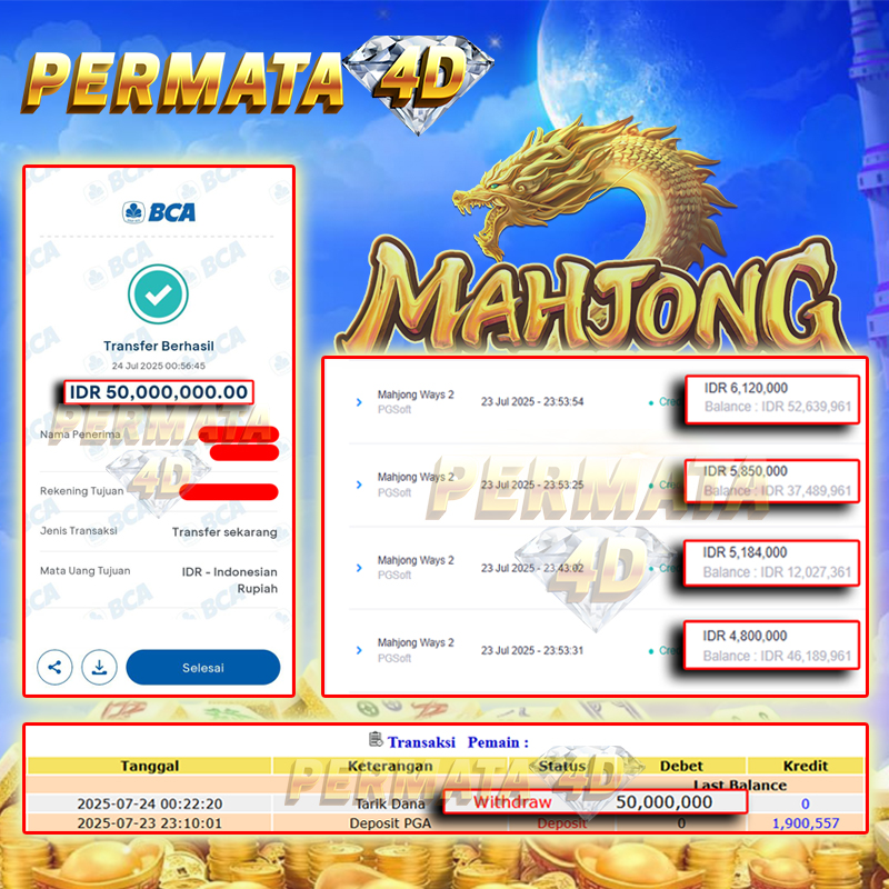 PERMATA4D JACKPOT MAHJONG WAYS 2 Rp. 50.000.000,- LUNAS